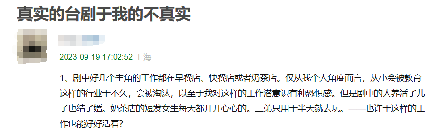 老實説,這裏面其實充斥着大量的“不真實”,比如在豆瓣上有人提問,只靠早餐店養一家幾口人,他們怎麼不焦慮?