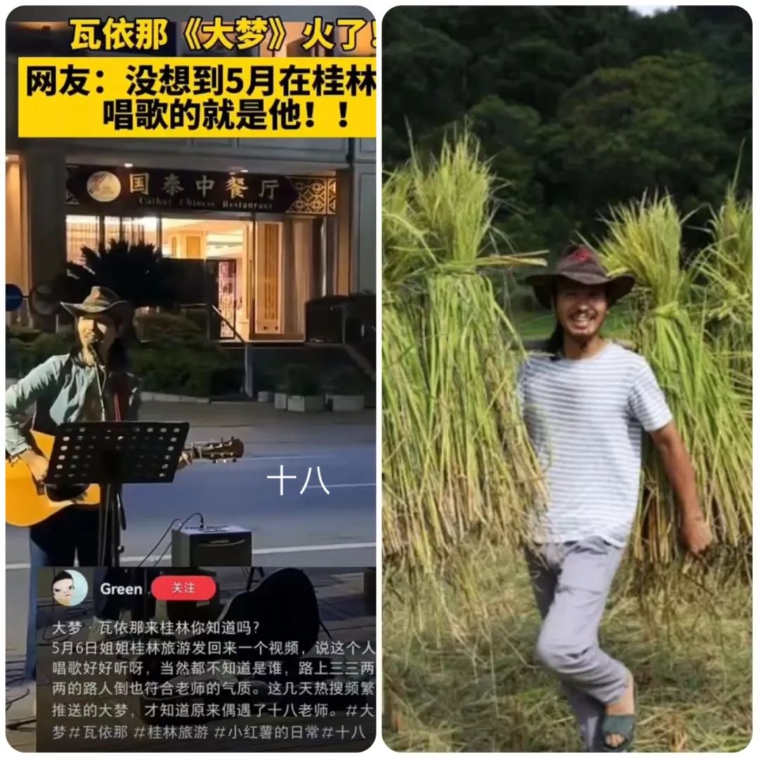 人生為何只能有一種選項?這個問題,2017年受邀參加國際有機農業聯盟大會的岜農在思考,《大夢》的作者十八當時也在思考。他跟岜農一樣成長於桂北的小山村,也一樣早早就離開家鄉闖蕩江湖。從拉薩到上海,從烏魯木齊到昆明,走遍大江南北的他,最終還是回到了家鄉桂林,以自己母校十八中的“十八“作為藝名賣唱於濱江路上。