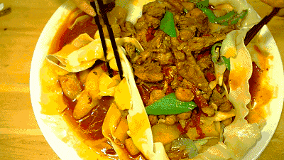 大盤雞的靈魂是土豆,不愛吃土豆的人也會愛上大盤雞裏的土豆,香熟軟糯,一口即爛,再配上一份皮帶面,吃到的那一瞬間,我感覺回到了家,吃到了媽媽的味道,在異地吃到家鄉的美食讓我吃出了眼淚。