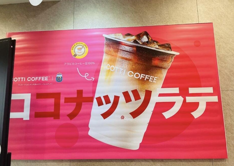本郷の日本1號店を訪ねた。アメリカーノやカプチーノ、キャラメルラテなどコーヒーショップらしい定番メニューもあるが、看板商品はココナッツラテ(生椰拿鉄)だ。中國でよく飲まれているココナッツミルクを使ったラテで、瑞幸咖啡が売り出したことから中國でヒットし今ではどこのカフェでも定番メニューになっている。味は、というと甘みがあるココナッツミルクをラテに使うことでまろやかな味わいになっていて飲みやすかった。他にもココナッツジャスミンティーやココナッツスムージーなどココナッツを使ったメニューも用意されていた。Cotti Coffeeがアルゼンチンサッカーチームのスポンサーを務めていることから、アルゼンチンの國旗やサッカーユニフォームをイメージした水色のブルーベリーテイストのドリンクもある。