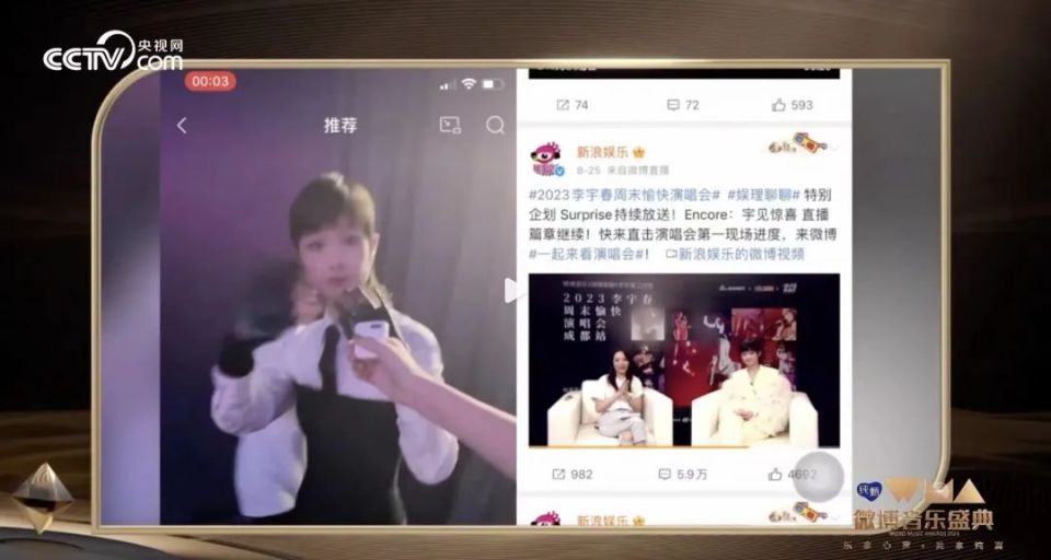 #張傑點歌台#是微博日常運營話題,也延續到巡演中,在線上投票徵集歌單,在演唱會現場兑現,實現了線上線下聯動。還有2023李宇春週末愉快演唱會,微博打造演唱會事件化幕後直播,共探演唱會台前幕後,帶大家沉浸直擊演唱會幕後,觀看次數3000萬+。