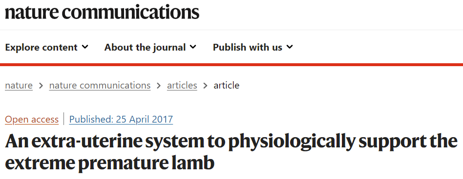2017年4月,《自然》雜誌發表了一篇名為《支撐極端早產羔羊生長的外部子宮系統》的論文。