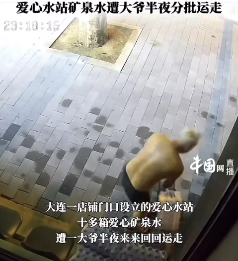 有店家同樣做了愛心水站,可等到黑夜降臨,有人半夜開着車來,偷走了一整車的礦泉水。
