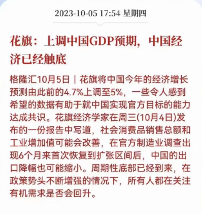 然後10月5號外媒一看中國國內旅遊如此繁盛,馬上開啓一波樂觀預測