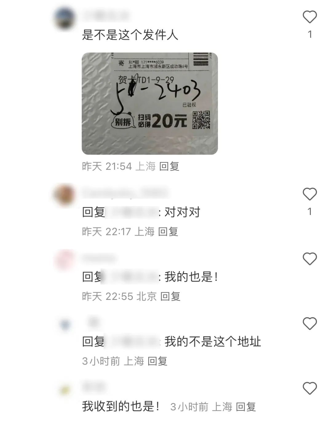 這些蟹卡快遞都是從這個地址發出的: