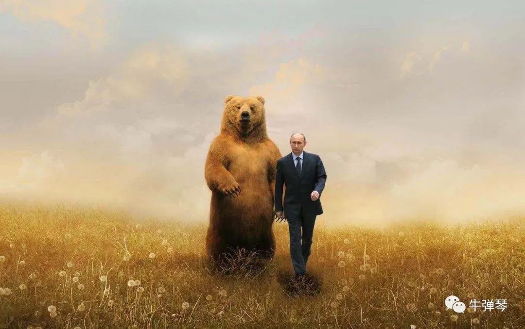 哦,就是最上面的那幅,蒼茫的原野上,西裝革履的普京,和一隻碩大的俄羅斯熊正聯袂走來。