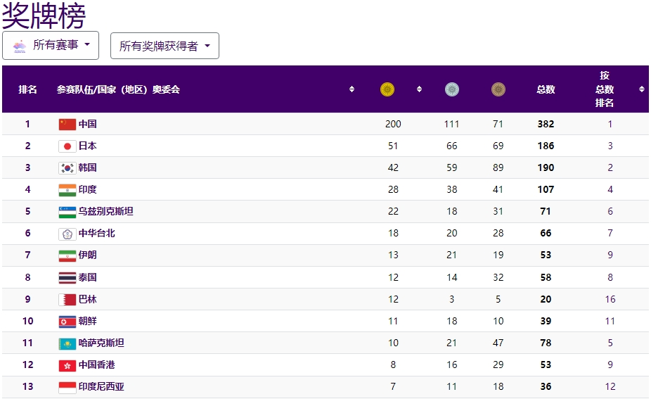 你要覺得這個成績對於人口總量與我國相當的南亞鄰居,沒有什麼了不起,那再補充一個背景——沒有錯過任何一屆亞運會的印度人,僅在1951年(第一屆,新德里)和1962年(第四屆,雅加達)躋身獎牌榜前三,那還是因為早年參賽國沒那麼多。
