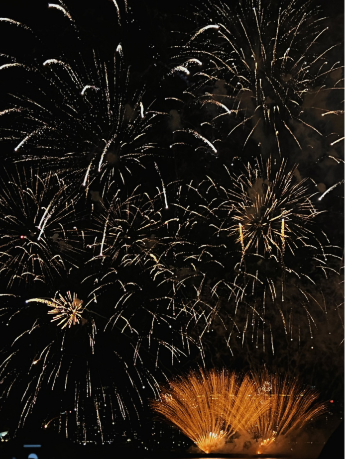 她的快樂很具體,誇獎與煙花表演時播放的背景音樂非常的契合,跟家人討論這次的煙花比上次在澳洲的好看。不是每個人都能像她一樣盡情地喊出來,但是大家藉着她的興致,也能感受到些許痛快,到了第二場明顯都放開了,漸漸可以聽到更多的助興聲。