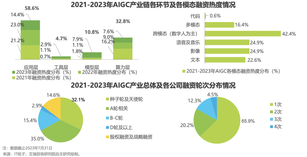 (2021-2023年AIGC產業鏈各環節各模態融資熱度情況)