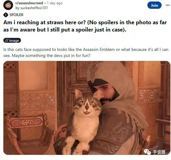 起因是,有網友在Reddit論壇發帖,説自己在《幻景》裏發現了一隻鼻子上有《刺客信條》標誌的貓,問其他玩家這是否為開發者埋下的趣味元素。