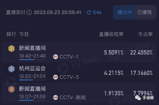有趣的是,這次杭州亞運會開幕式的央視收視率破5%刷新紀錄,多台累計收視率更是高達13%,很難不讓人浮想聯翩——不會是大家都在忙着找自家崽們而托起來的收視率吧!