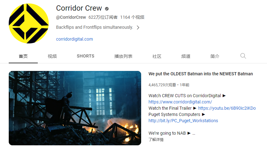 Corridor Digital是一家位於美國洛杉磯的製片工作室,由一羣內容創作者、影視製作人和特效愛好者組成,曾為谷歌等多家大型公司製作過電視廣告。