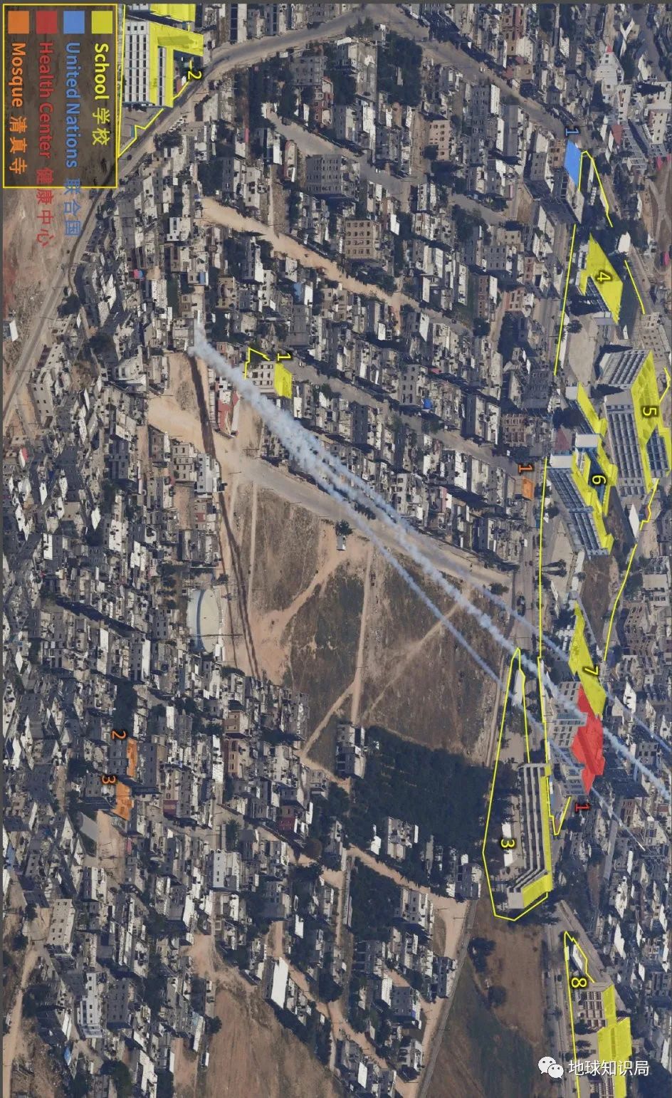 哈馬斯火箭彈從人口稠密地區發射的圖像