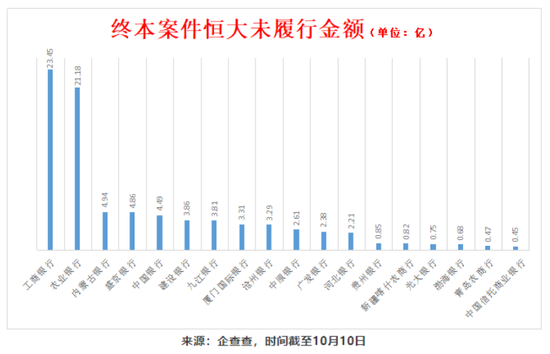 其中未履行金額最高的銀行是工商銀行,為23.5億;農業銀行為21.18億;其餘銀行則均低於5億元。
