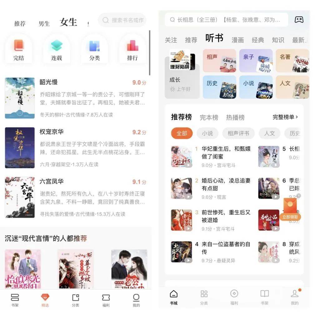 (左 / 宜搜小説App;右 / 番茄免費小説App)