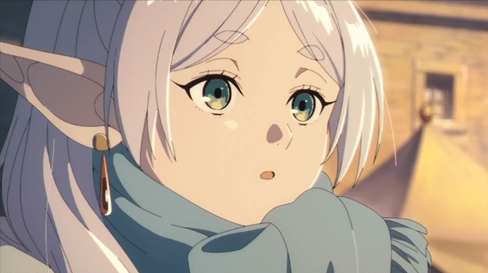 很多動畫的畫面製作有一種人物和背景是兩個風格圖層的感覺,但芙莉蓮的人物和背景融合的渾然一體,直接起到了給故事加分的作用。