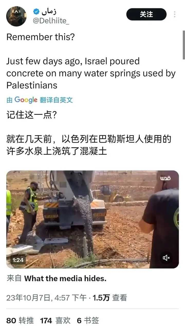 時不時還要遭到以色列的強拆、轟炸、斷水斷電,甚至定點清除。以色列人用混凝土堵死巴勒斯坦人取水的泉眼,生存空間被不斷蠶食。