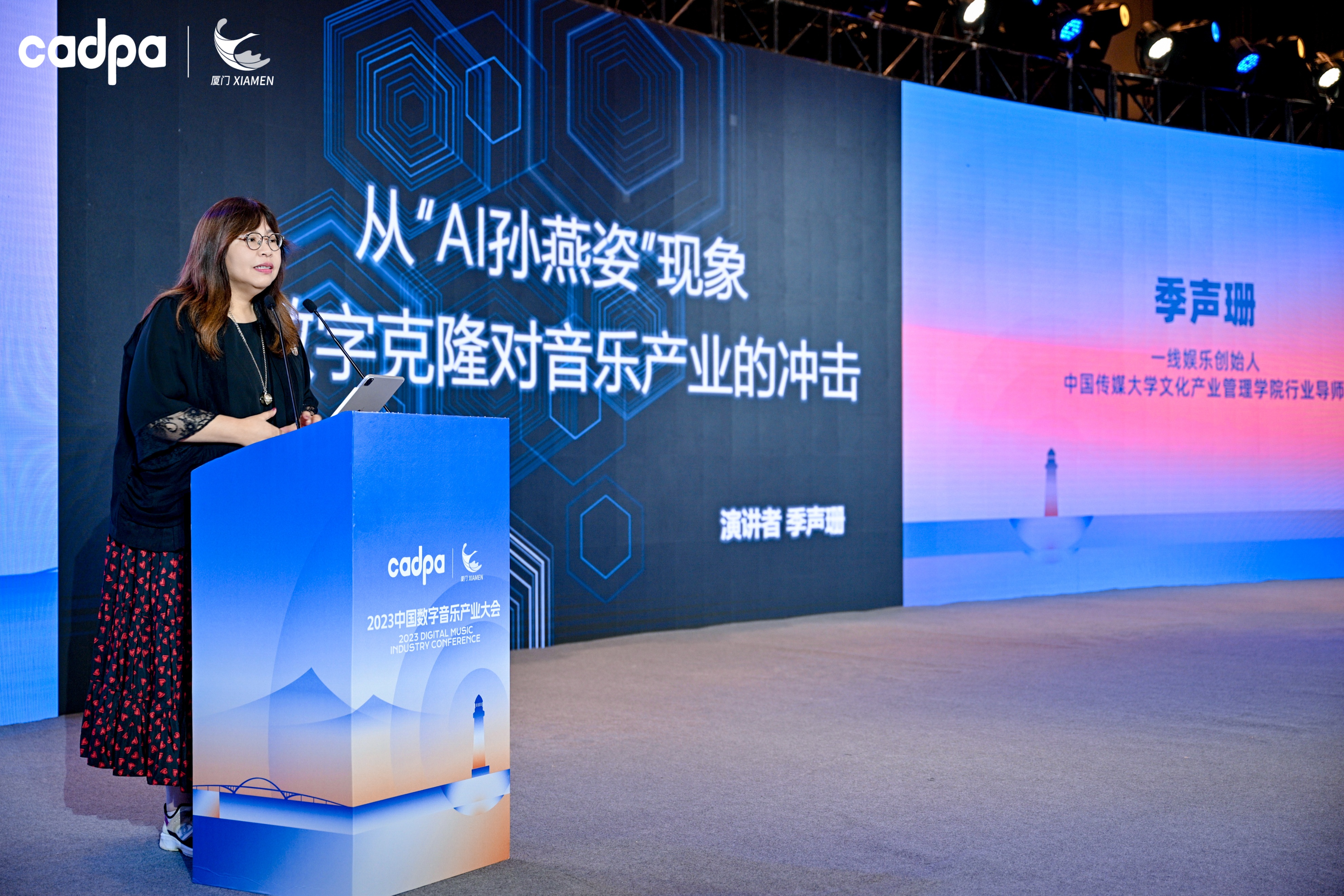 面對AIGC技術對數字音樂產業版權問題的挑戰,一線娛樂創始人、中國傳媒大學文化產業管理學院行業導師季聲珊發表了題為《從“AI孫燕姿”現象談數字克隆對音樂產業的衝擊和影響》的演講。她指出,在技術高速發展的時代,保護音樂創作者權益和版權至關重要。除了傳統版權管理,還應利用數字水印和版權保護技術等手段對音樂作品進行加密和保護,以確保公平發展的生態環境。