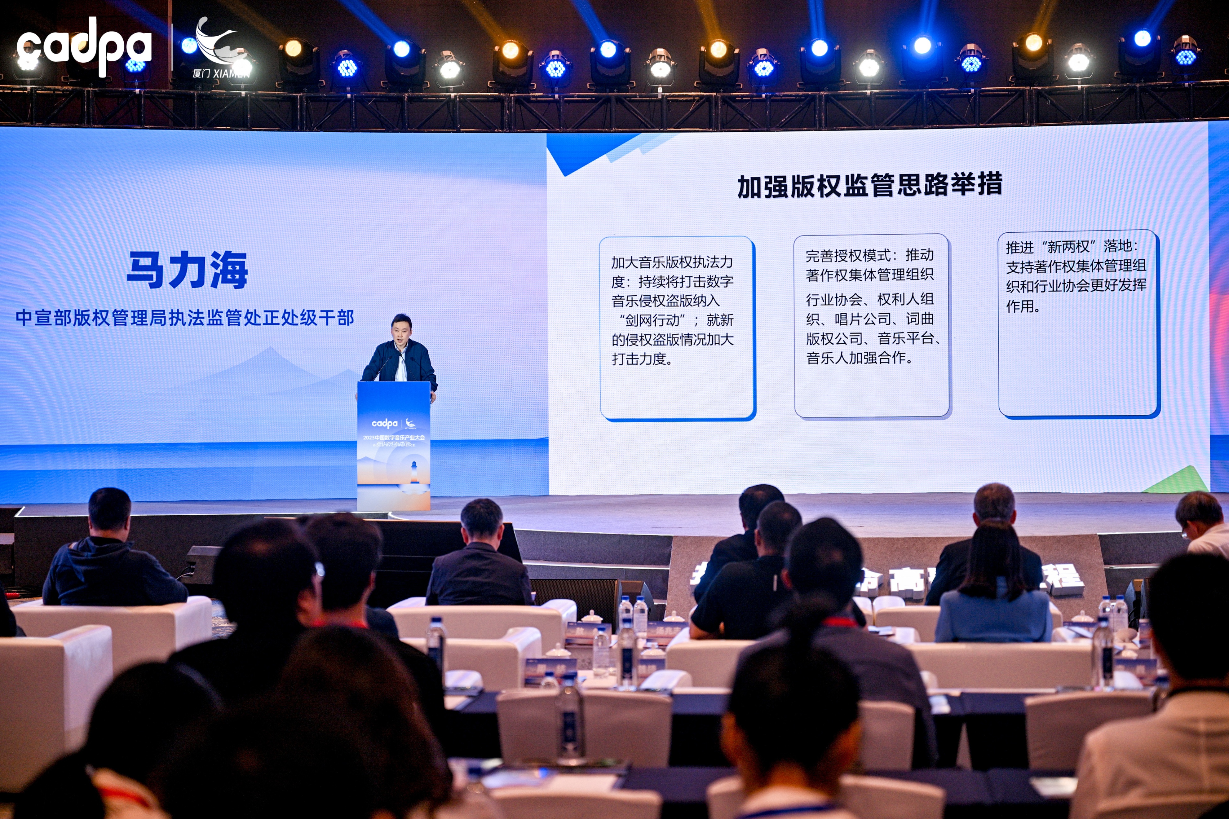 接下來,中宣部版權管理局執法監管處正處級幹部馬力海發表了題為《強化版權監督,推動數字音樂產業健康發展》的演講。針對數字音樂產業中版權問題的複雜性、授權模式不完善以及盜版現象反彈風險等治問題,他提出了下一步推進數字音樂版權保護的“三步走”工作部署,包括加大版權執法力度、完善授權模式和推進錄音製作者“新兩權”落地等,呼籲行業共同維護數字音樂版權良好生態,助力產業健康發展。