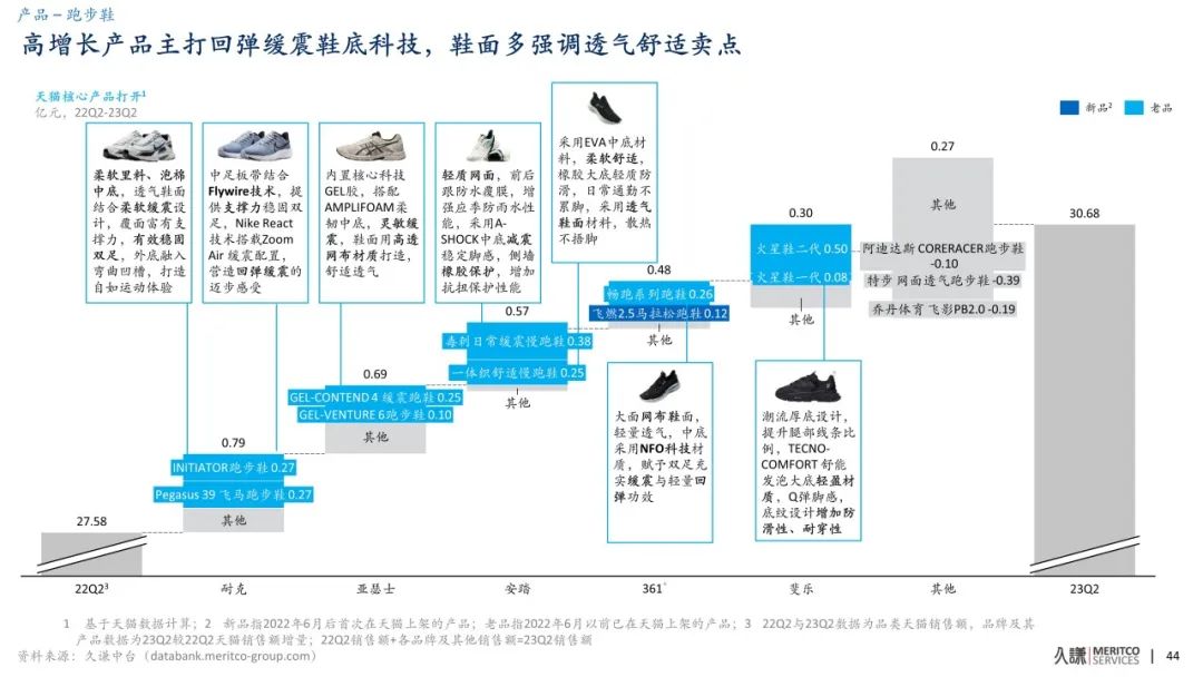 隨着健康生活方式的推廣和消費者對於體育鍛煉的日益關注,跑步作為簡單高效的運動方式再次受到大眾的熱捧。這一消費趨勢帶動了性能運動服裝,尤其是跑步鞋的銷售熱潮。2023年第二季度,跑步鞋品類的線上銷售額同比實現了11.7%的增長