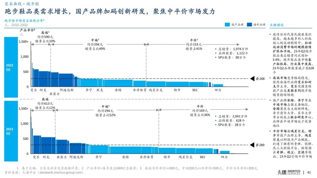 高端市場的競爭相對穩定,主要由斐樂和耐克等知名品牌主導;其中,斐樂憑藉其火星鞋系列的爆款跑步鞋獲得了顯著的銷量增長