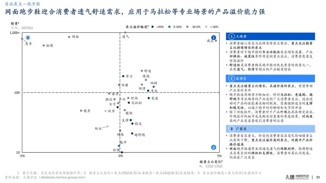 必邁作為一個新興品牌,採取“互聯網+體育”的模式進入市場,專注於細分的馬拉松市場,並提供從初級到專業的全套跑步裝備;這一策略為他們贏得了大量忠實用户的支持,讓品牌在短時間內得到了快速的成長和發展,23Q2在線上跑步鞋市場維持增長態勢