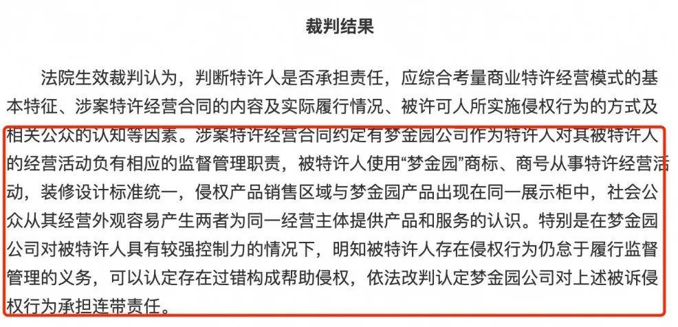 由此可見,夢金園對於加盟商的監督管理不足,間接造成了侵權案件的發生。