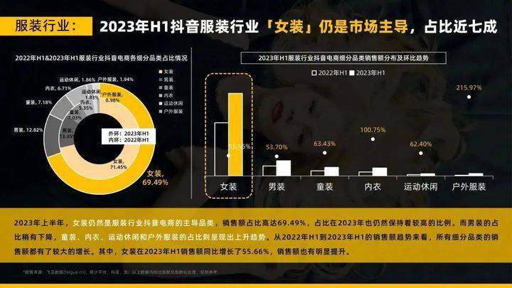 2023年H1抖音服裝行業「女裝」仍是市場主導,佔比近七