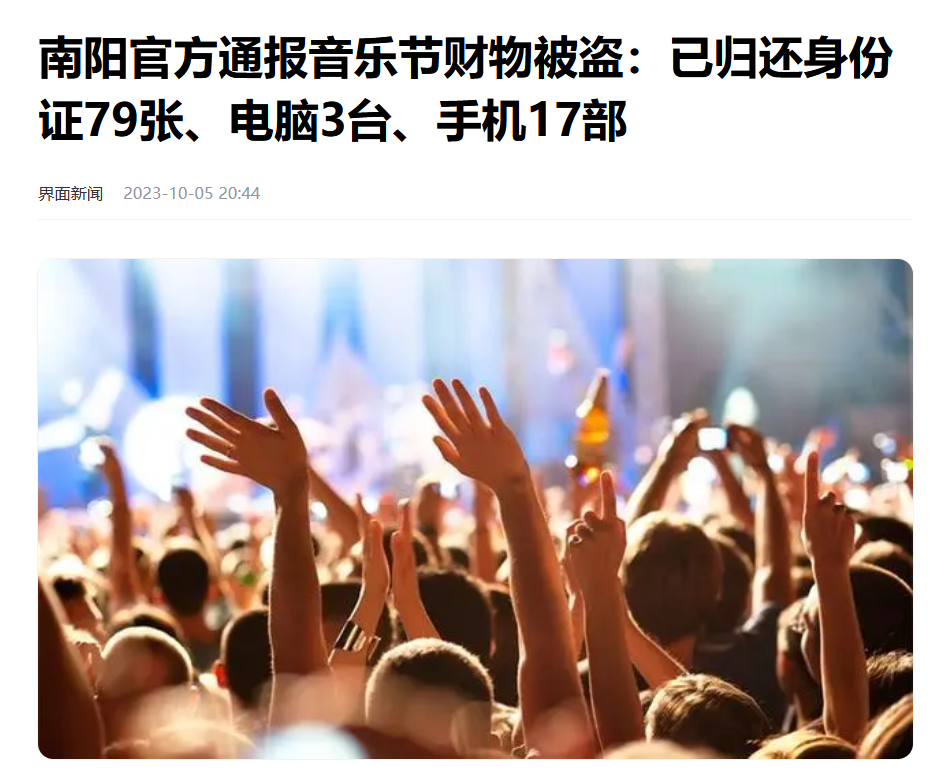 偏偏南陽這次辦的是搖滾,它的場面天然就比較隨意乃至混亂,參與者的情緒也是比較飽滿的,恐怕衣裝也不會太正式。這在一些老一輩村民看來,就是在自己地頭辦個大堂會,還不太正經那種,現場亂哄哄的,當然要趁亂去撿洋落。