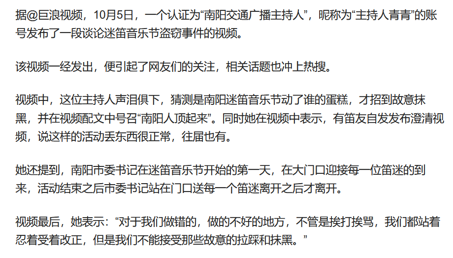 地域歧視固然長期存在,也無法完全根除,但對河南這樣廣大區域的集中攻擊,是必須得到及時打擊的。**因為它本質上是在消解中國這個共同體。**隨着經濟的發展,全民的素質都在提升,像過去一些固有印象和外來務工者的歧視也逐漸消亡。那種對河南地區的歧視已經逐漸淡去了,而這次南陽的音樂節事件,在輿論上實際上起了一種沉渣泛起的效果。