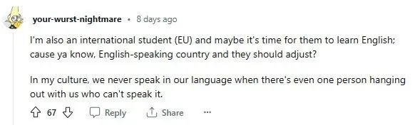 另一名網友則指出了中國留學生不愛説英語的事實,