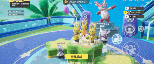 而所有率先抵達終點的玩家,也不會無所事事地乾坐着觀賽,而是可以登上領獎台搶奪皇冠。如果説前面的闖關偏向於競技體驗,那這個環節就更像是賽後的交友時間。