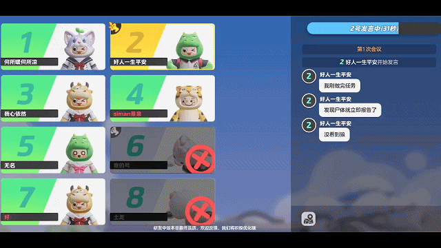 不過,玩過“狼人殺”類遊戲的都知道,一局遊戲實在太耗時間,且推理過程較為硬核,並不適配每個玩家。因此,《元夢之星》又設置了“卧底行動”玩法,雖然這也要求玩家分陣營對抗,在完成任務的過程中找出卧底,但它去掉了發言推理的過程,整體節奏更快、更胡鬧,適合休閒玩家。