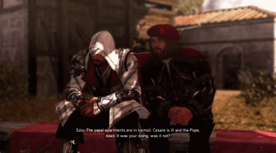 我印象最深的就是在最後一戰中,艾吉奧打敗了最終 BOSS 亞歷山大六世,卻最終放過了他。