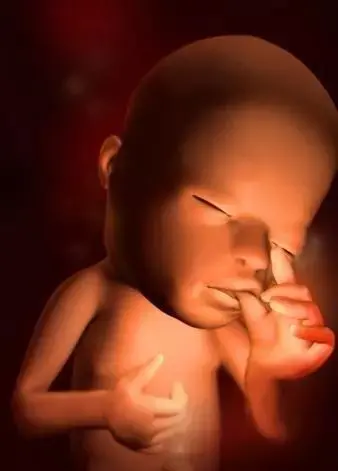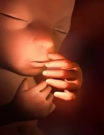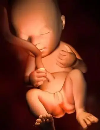 孕15周:胎兒吮吸手指,胎兒頂臀長大約有10釐米,重約60~70克。他的腿現在比胳膊長,並且可以活動所有的關節和四肢,手變得更加靈活。