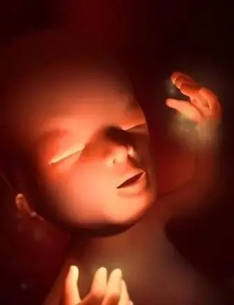 孕22周:胎兒眉毛和眼瞼清晰可見,胎兒的體重大約已有350克,身長約19釐米,手指已長出指甲。
