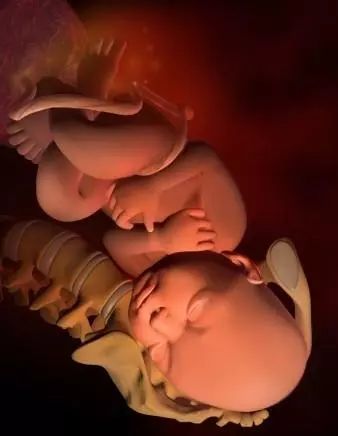孕34周:大部分胎寶寶頭向下,胎兒體重大約2300克,坐高約為30釐米。此時胎兒已將身體轉為頭朝下的姿勢,頭部已經進入骨盆。這時胎位是否正常直接關係到孕婦是否能正常分娩,如果胎兒臀部向下體位或是有其它姿勢的胎位不正,醫生會採取措施進行糾正。