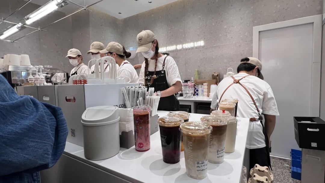 一位曾在Manner做過咖啡師的從業者透露,她任職時所在的門店,最高峯時,只需要6個人,就能完成單日最高3000杯的出品,秘訣也是曾被多次報道過的**“流水線式作業”。**