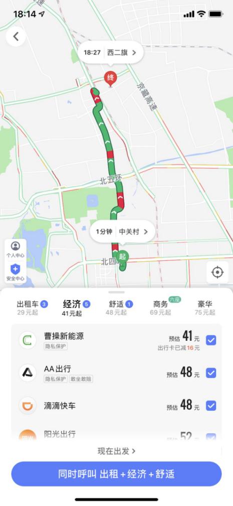 基於地圖優勢的聚合打車服務是高德的核心競爭力所在。作為第三方平台,高德並沒有開闢司機端的業務,而是接入眾多出行服務平台,如曹操出行、T3出行、添貓出行等,網約車資源豐富,能夠為用户在全國範圍內提供出租車、經濟、舒適、商務、豪華等多種車型的選擇。這樣的模式也讓其合作的網約車平台實現了飛速發展,超過100家合作網約車平台月峯值訂單量超過10萬。