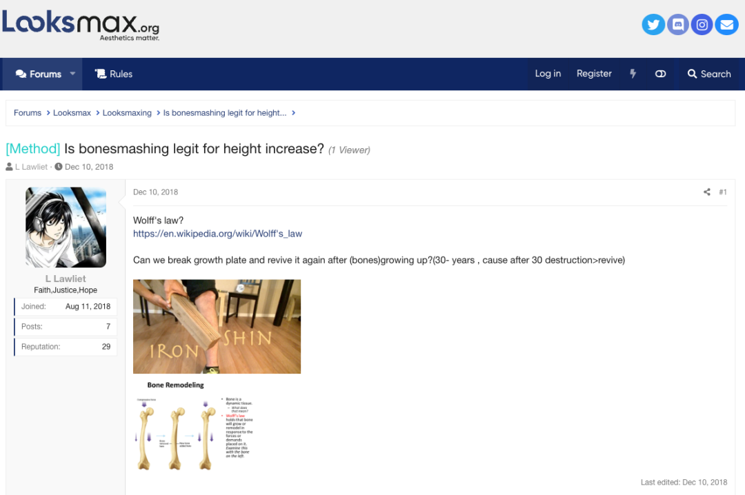 如今,當你再回到BoneSmashing一詞於互聯網的(maybe)最初誕生地Looksmax.org,裏面已寫滿對BoneSmashing的不屑與嘲諷。