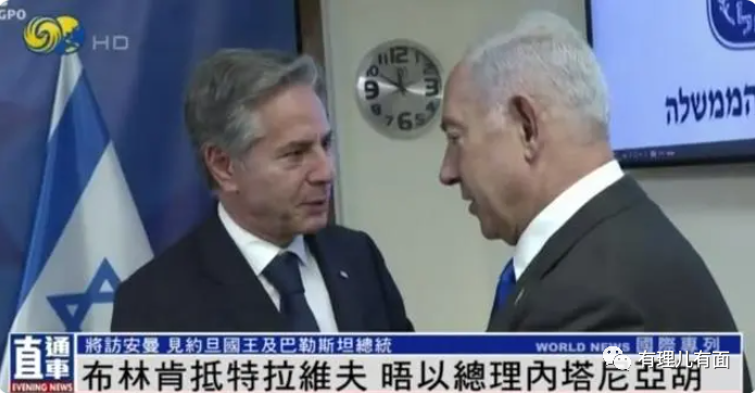 布林肯在10月12日到訪以色列,連續數日穿梭中東多國之後,於10月16日又再次訪問以色列,並與內塔尼亞胡通宵達旦從16日下午激烈交鋒到17日凌晨。