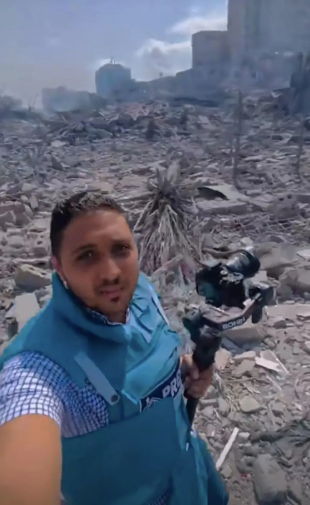 加沙戰地記者為大家直播現場情況。來源/微博視頻截圖
