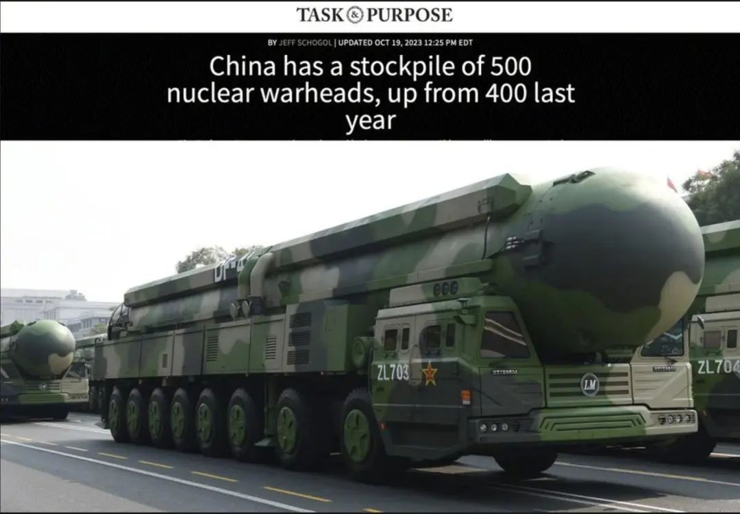 最新數據,美國宣稱中國已經擁有500枚核彈頭。美國國防部剛剛發佈的《2023年中國軍力報告》,宣稱中國“快速擴張核武器”,核武庫和海軍軍艦數量都創下了歷史新高。截至到2023年5月,中國已經擁有超過500枚核彈頭,預計到2030年可能超過1000枚核彈頭。