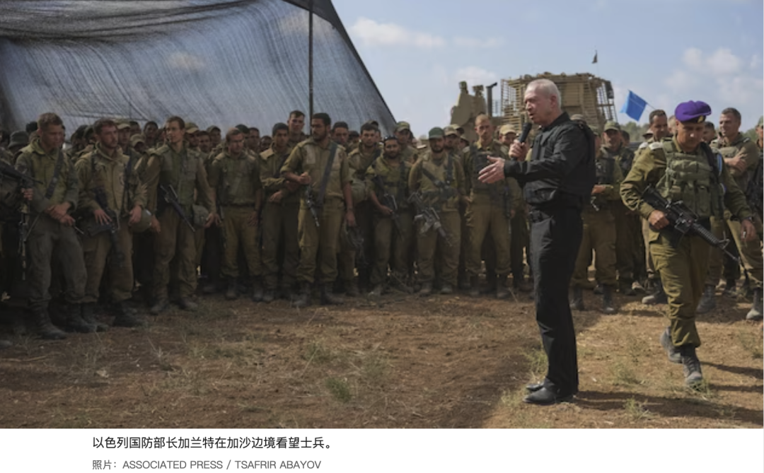 以色列國防部長加蘭特(Yoav Gallant)告訴士兵們,現在遠眺加沙的他們很快就可以看見它的內部,命令會很快下達。