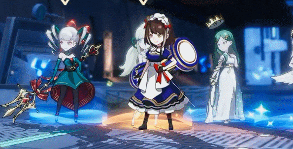 讓我真正留意起這個角色的,則是在我初次在戰鬥中派她上場——每個奏者會有專屬的登場動畫,阿萊城的出場方式是“不小心走過了頭,又強裝鎮定走回原位”,甚至還有戰術喝茶。