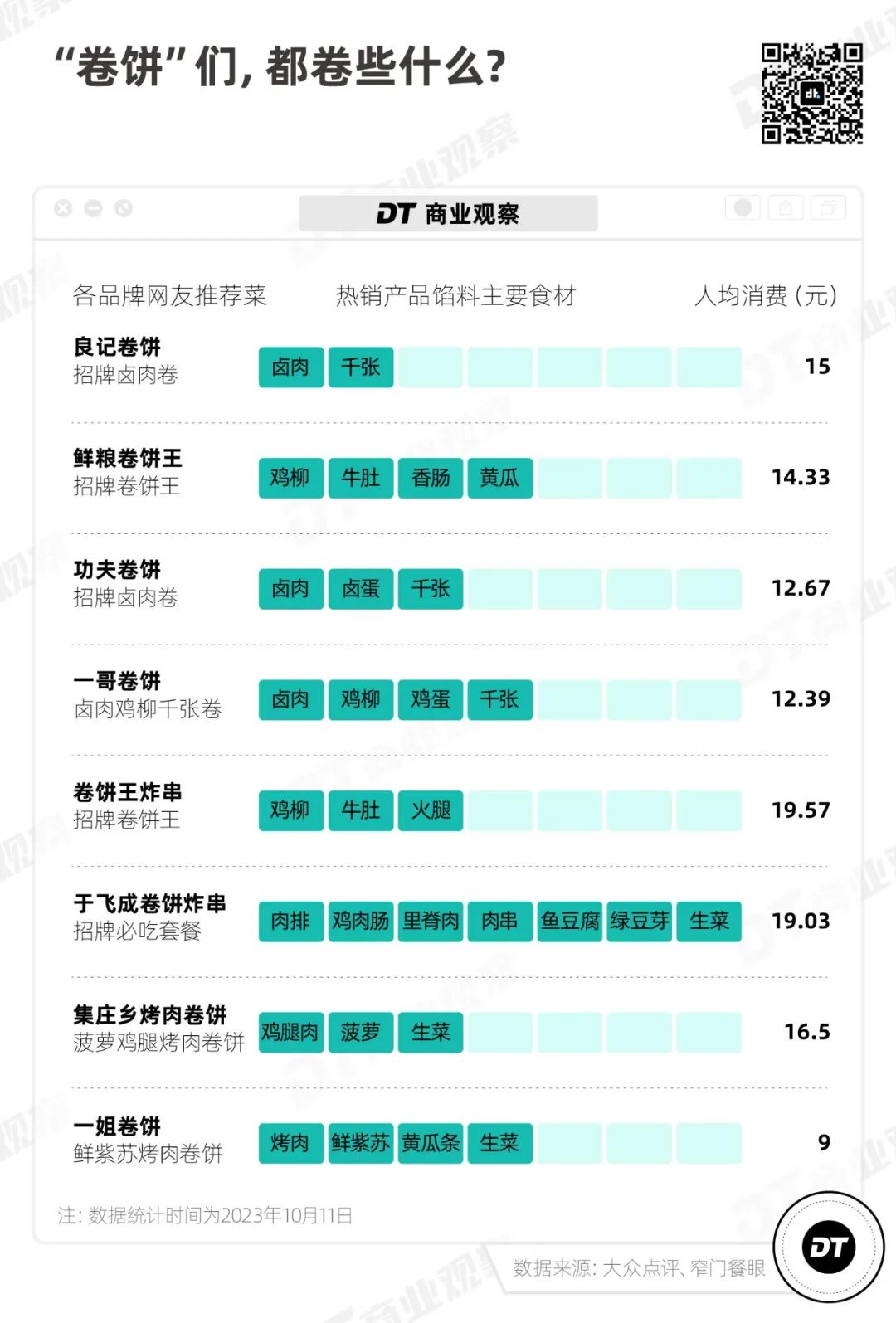 通過拆解幾家熱門捲餅品牌的招牌產品,我們發現:豐富的餡料,是連鎖捲餅品牌們,主要“卷”的方向。