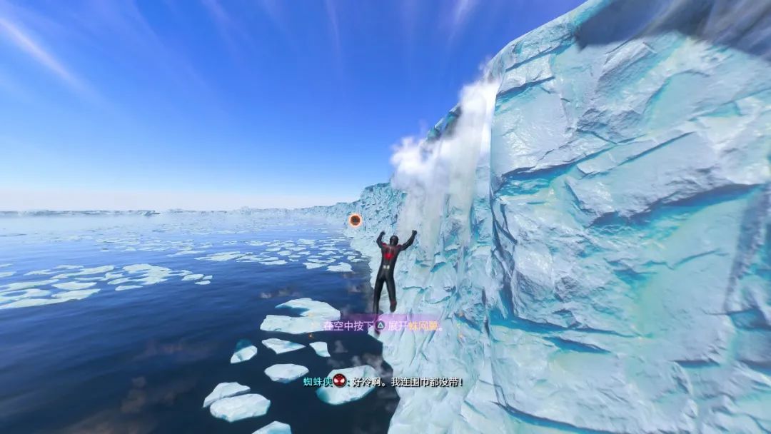 再比如中間有一段流程,你會體驗到《瑞奇與叮噹》那引以為傲的,基於PS5超快硬盤讀取速度的“穿越”體驗,配合蜘蛛俠特有的動作演出,甚至視覺效果更優更渾然天成——而這只是遊戲中一個小插曲,並沒有做過多展開,這種驚豔的一次性體驗在開放世界遊戲中奢侈到近乎浪費。