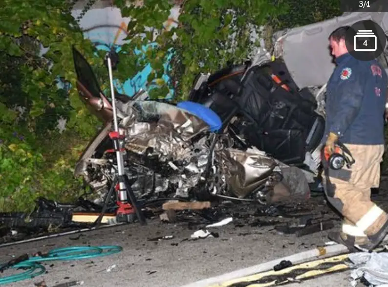 幾秒鐘之間,寶馬車與一輛起亞Amanti迎面相撞,造成三人死亡,三人重傷。
