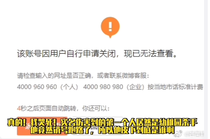 匿名説唱歌手@幼稚園殺手乾脆直接註銷了微博:
