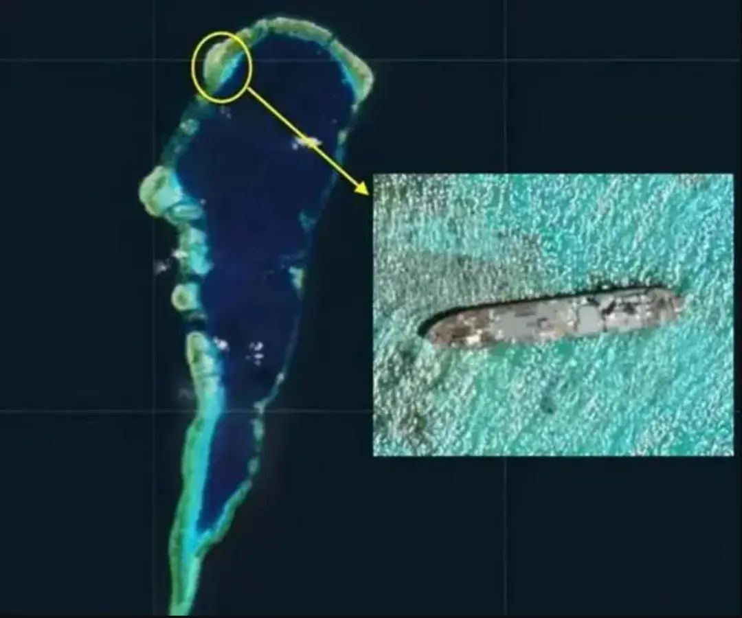 仁愛礁是我們中國的固有領土,在1999年5月8日以美國為首的北約轟炸我駐南聯盟大使館的第二天,菲律賓方面趁火打劫,偷偷派出了一艘名為“馬德雷山”號的登陸艦,以遭遇事故為由在仁愛礁衝灘坐沉,從此就賴在那裏不走了。